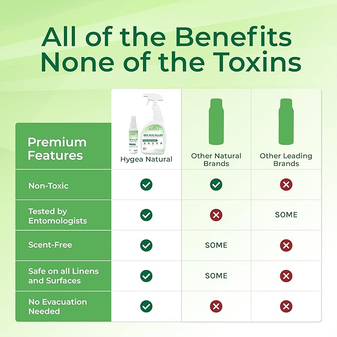- Child & pet friendly: The powerful formula exterminates bed bugs & pests. This bed bug spray is ok to use in households with pets & children. Hygea Natural ExterminatorⓇ is used by hospitals & hotels nationwide.