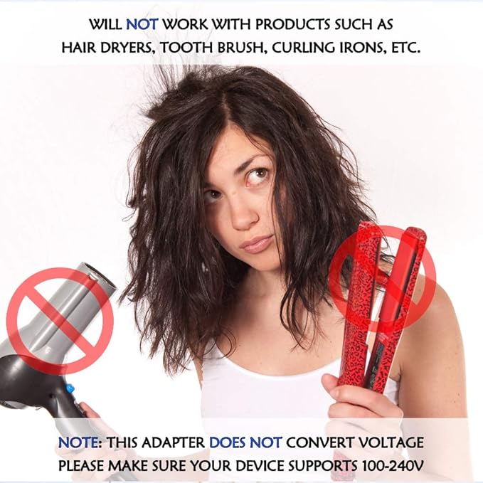 - Accepts plugs from all countries including USA, does NOT accept plugs from S. Africa