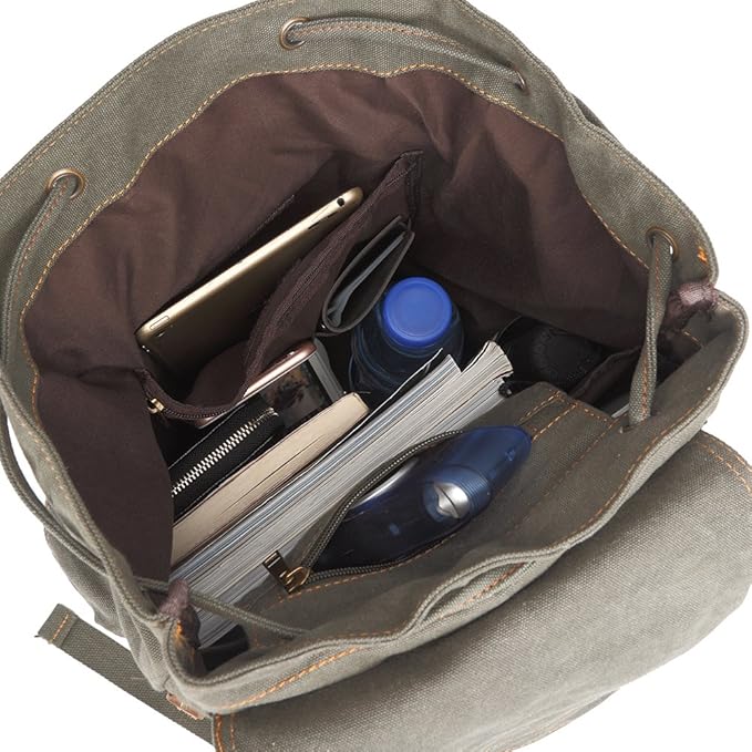 - ✔This BLUBOON vintage canvas backpack is classic, it shows you outstanding temperament. With drawstring design for the main compartment to tight well. Its magnet closure makes the back pack very easy to open and close.