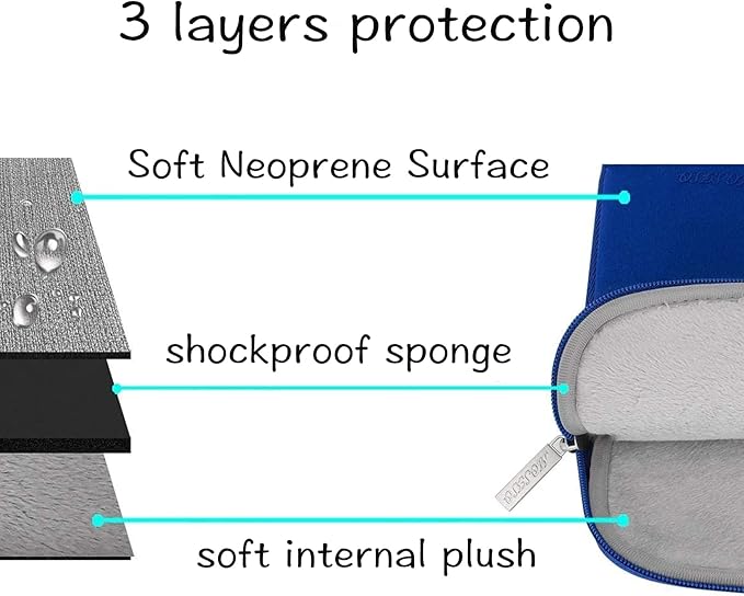 - Features a neoprene foam padding layer and fluffy fleece fabric lining for bump and shock absorption and protection of your computer from accidental scratches.