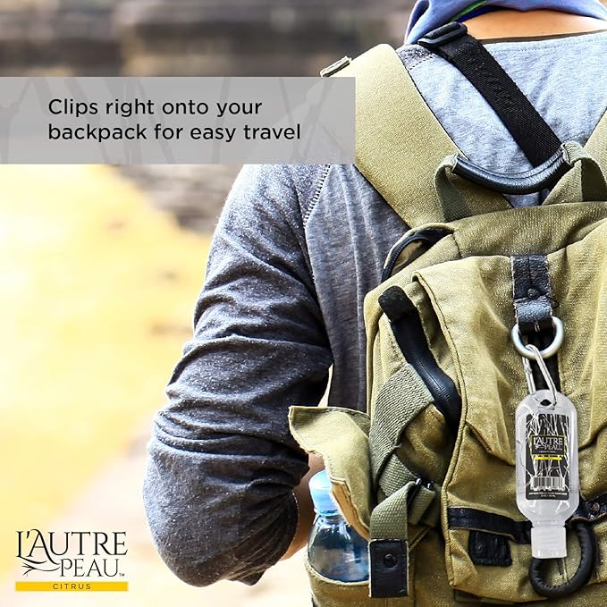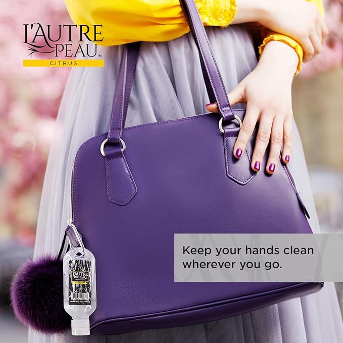 Travel Hand Sanitizer Gel with Aloe Vera & Vitamin E Made by L’AUTRE PEAU - Citrus Scented Alcohol Based Liquid Instant Hand Cleaner Pocket Sanitizer with Carabiner Clip (2oz 3 Pack)
