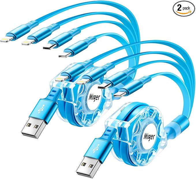 - 👍【What You Get】: 2 Pack 4 in 1 4Ft/1.2m Retractable Multi Charging Cord,Miger retractable car charger cables Provides 12 Month Free Warranty and Refund Service.