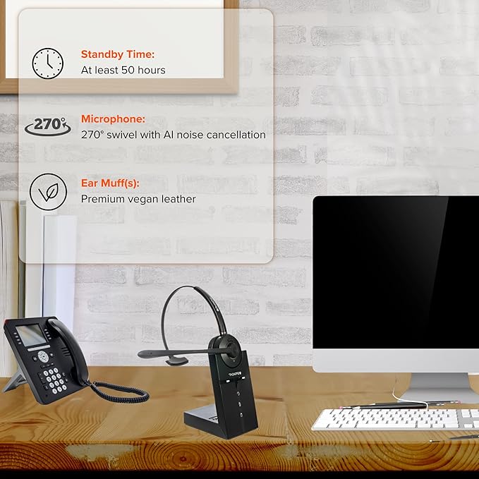 - 350ft Range: Experience unparalleled freedom with our DECT wireless headset. Great for work from home or office workers, this headset ensures seamless connectivity and less connection interruptions than bluetooth.
