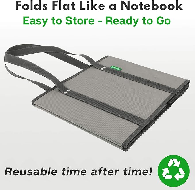 - Easy to Clean: Simply use a damp cloth or sanitizer wipe to clean, then allow to air-dry – Our reusable grocery bags are foldable like a notebook when not in use – conveniently stores under your car seat, trunk, or a kitchen drawer
