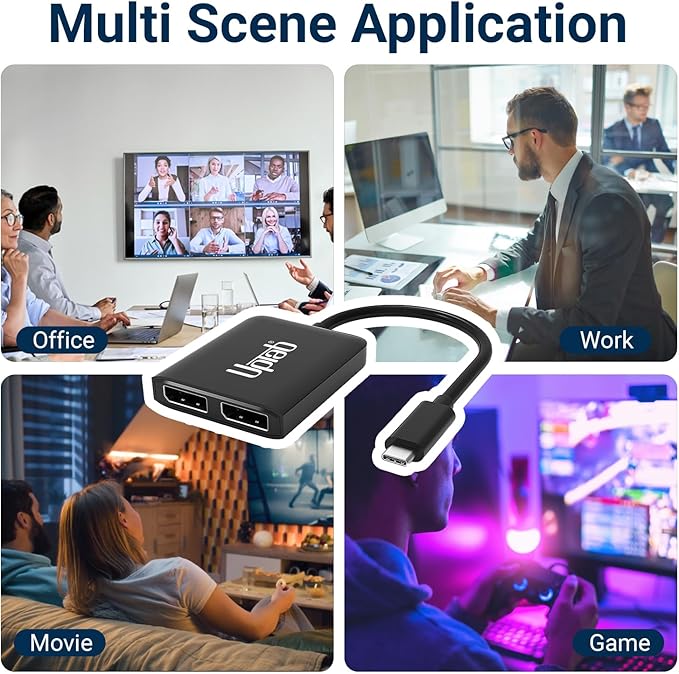 - This UPTab USB C to Dual DisplayPort Adapter 8K allows simultaneous connections of two monitors, providing superior picture quality with resolutions up to Single Monitor 8K 60Hz or Dual Monitor 4K 60Hz