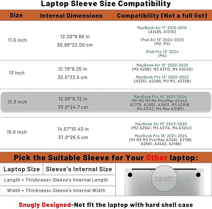 - Compatible Models: MacBook Air 13" 2010-2017 (A1466 A1369); MacBook Pro 13" 2010-2015 (A1502 A1425 A1278); MacBook Pro 14" 2021-2024 (M1 Pro/Max A2442, M2 Pro/Max A2779, M3 A2918, M3 Pro/Max A2992, M4 A3112, M4 Pro/Max A3401, M4 Max A3185). Also compatible with other brands of laptops