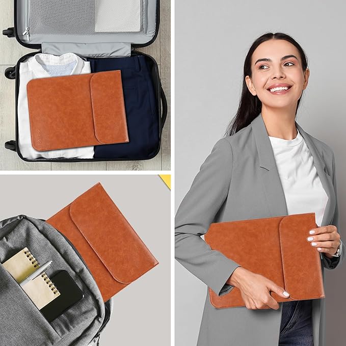- Premium PU Leather: Made of water-resistant PU leather and soft lining, this sleeve case will effectively protect your laptop from unwanted scratches, water, coffee and dust