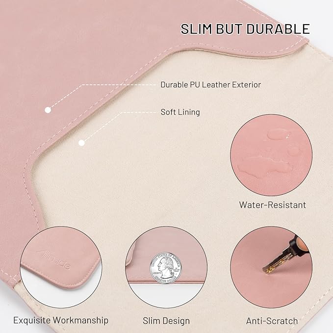 - Premium Leather: Made of water-resistant PU leather and soft lining, this sleeve case will effectively protect your laptop from unwanted scratches, water, coffee and dust