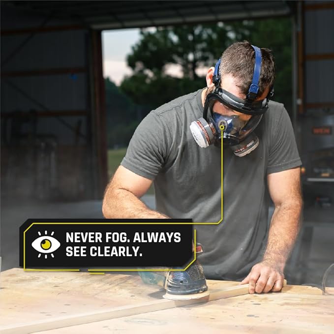 - Fog-Free Lens with Advanced Airflow Design: Designed to maintain visibility in real-world conditions, the PD-100’s advanced airflow system channels exhaled breath downward and outward, preventing fog from clouding the interior lens. Whether in cold-weather environments or hot, high-humidity zones, this system keeps your field of view clear, critical for tactical coordination, chemical spills, or DIY accuracy.