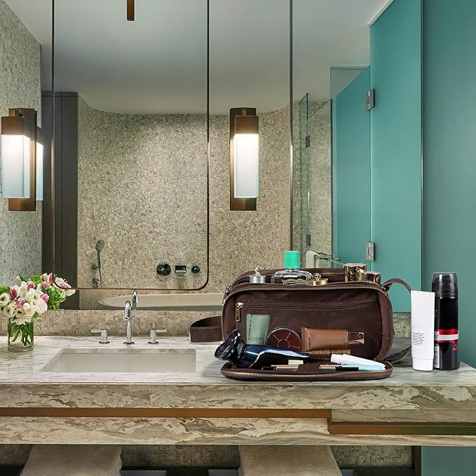 Elviros Travel Toiletry Bag for Men, Shaving Dopp Kit Water-resistant Bathroom Small Toiletries Organizer PU Leather Cosmetic Bags