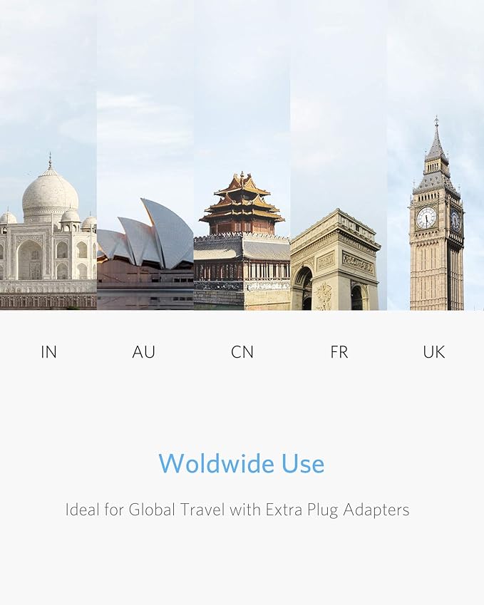 - Portable and Universal: Compact size(6×3×1.57 in) with 5 international travel adapters (Type G/D/M/AU/US),powering your devices in more than 160 countries,EASY YOUR TRIP!