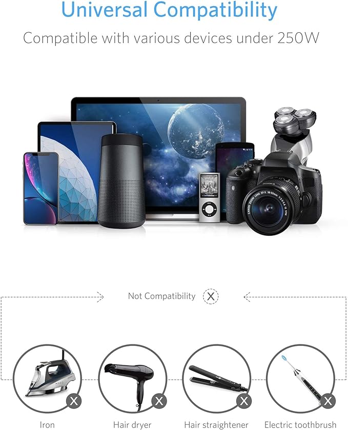 - BESTEK Travel Voltage Converter: Converts all countries voltage(100-240V,50/60Hz) to US voltage (110V,60Hz), ideal for charging your multiple devices when traveling abroad