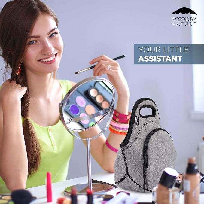 Nordic By Nature Neoprene Lunch Bag for Women & Lunch tote for Kids Insulated Lunch bag Reusable Washable Extra Thick Neoprene & Soft Cotton Feel, Premium Stitching, Outside Pocket, (M) Grey/Black