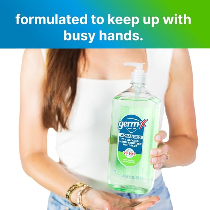 Germ-X Advanced Hand Sanitizer with Aloe and Vitamin E, Non-Drying Moisturizing Gel, Instant and No Rinse Formula, Pump Bottle, Back to School Supplies, 1 Liter