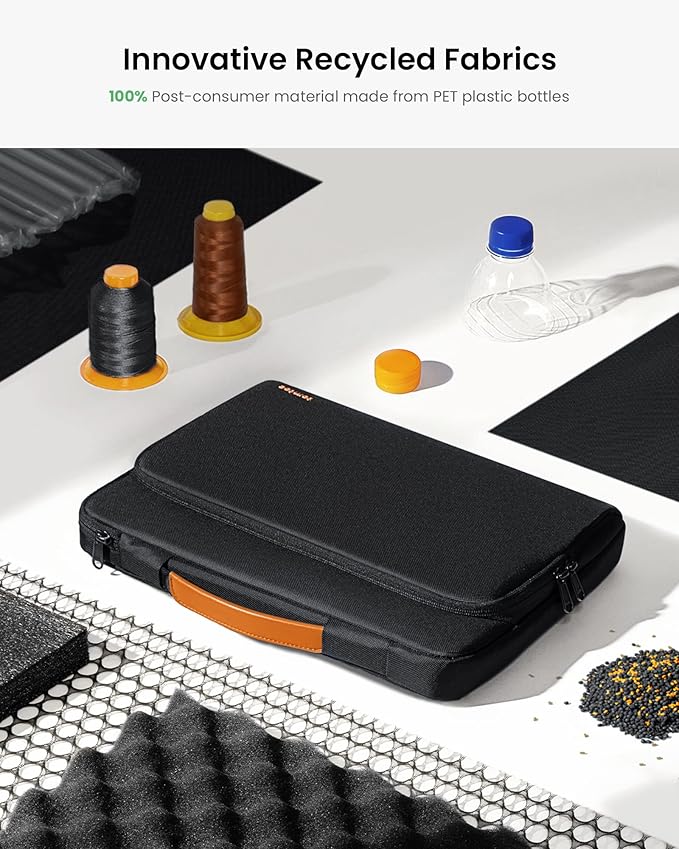- Quality Meets Performance: Top-quality YKK zippers and padded PU leather handles provide you with maximum comfort. Water-resistant recycled fabrics and soft fleece sophisticated interline design lining meet or exceed your expectations for laptop bag quality. Enable us to give complete protection to your computer while also protecting our environment