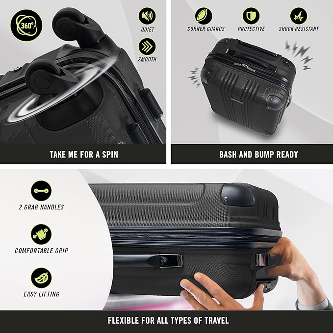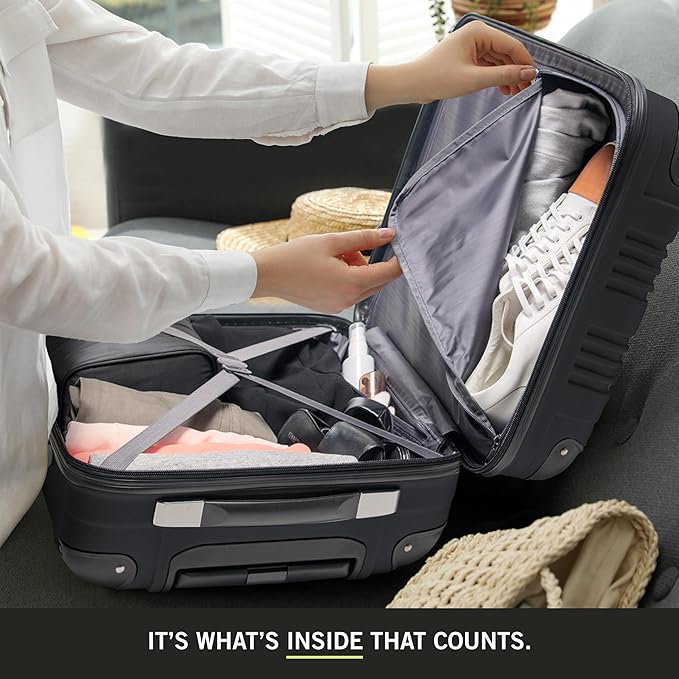 - ULTRALIGHT & DURABLE: made with a hard shell ABS & PC material and molded corner guards for extra protection. Interior features tear-resistant polyester lining.