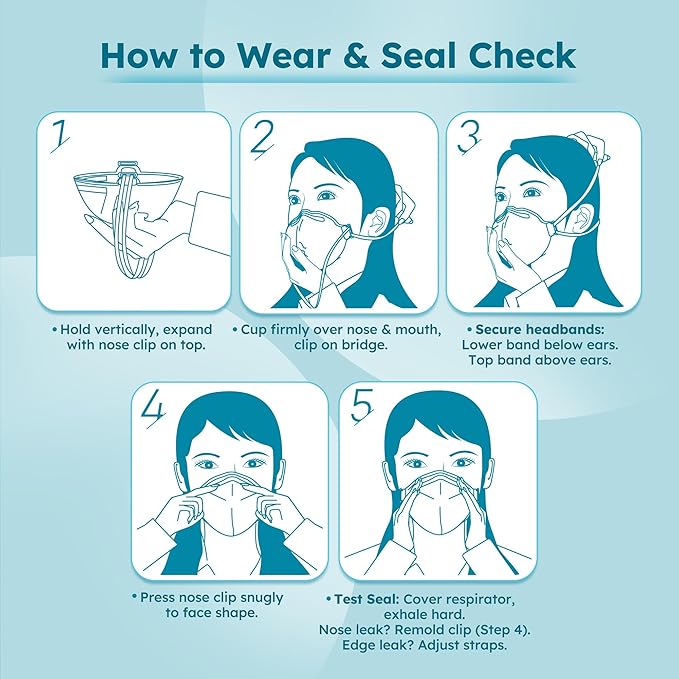- FLAT FOLD DESIGN & INDIVIDUALLY WRAPPED: N95 mask for adults is foldable and individually wrapped for easy storage and portability; Advanced, 5-layer filter material gives effective filtration with low breathing resistance for consistent high quality performance