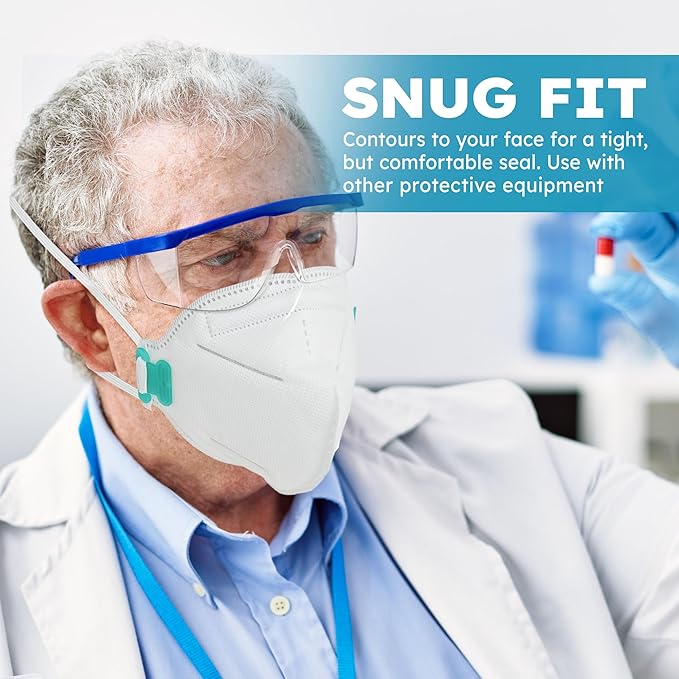 - CUSTOM-FIT DESIGN: Filter mask is comfortable and adaptable to any face shape, even when used with other personal protective equipment, such as glasses, safety helmets, hard hats, ear muffs or goggles; Soft nose clip and two adjustable elastic head straps create a secure seal for maximum protection