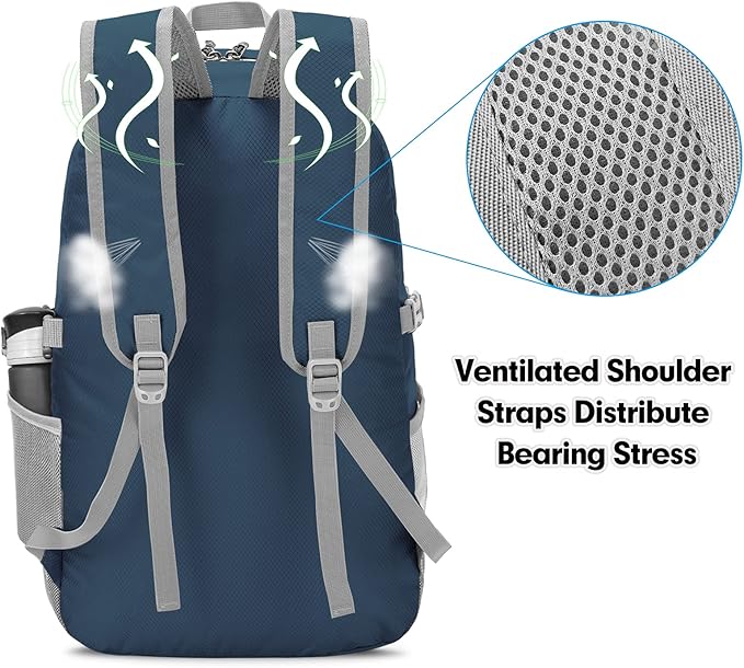 ZOMAKE Lightweight Packable Backpack, 35L Light Foldable Hiking Backpacks Water Resistant Collapsible Daypack for Travel(Navy Blue)