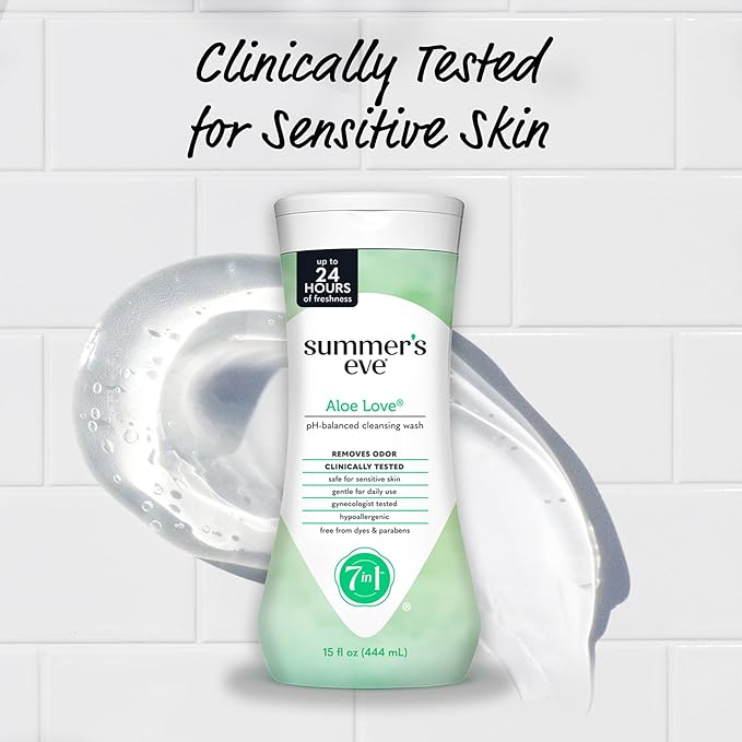 - Summer’s Eve Aloe Love Daily Gentle Feminine Wash removes odor-causing bacteria