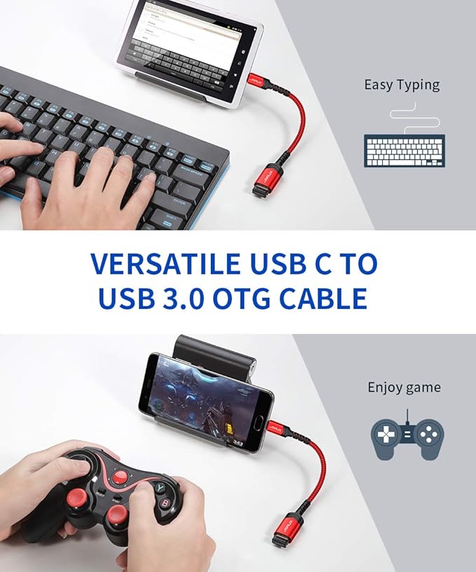 - 【USB On-The-Go】: Plug in and use computer peripherals, such as flash drive, keyboard, hub, mouse and more, makes your USB C devices compatible with USB drives and any other USB devices that support USB On-The-Go.