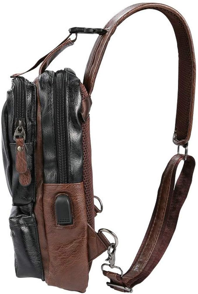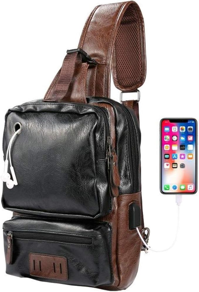 Men's Lightweight PU Leather Sling Bag - Breathable Crossbody Pack with USB Charging Port & 6 Pockets, Easy Access Organizer for Tablet/Gym Essentials - Commute, Travel, Work(Black)