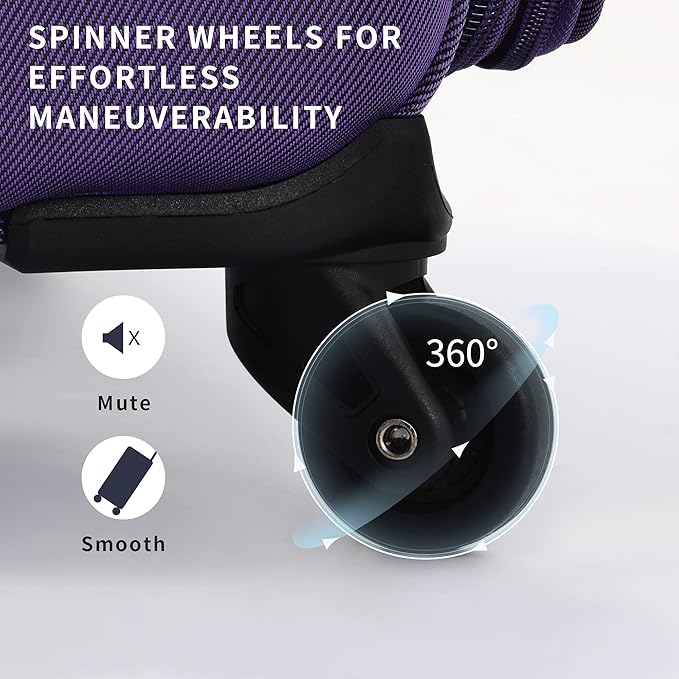 Merax Softside Luggage Set Softshell Lightweight 3 Piece Spinner Suitcase 22" 26" 30" Purple