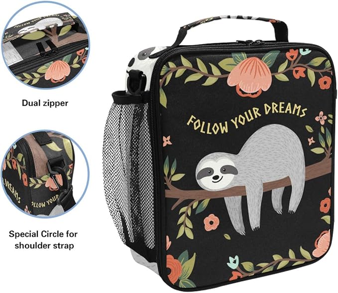 Lunch Box Bag Quote Animal Sloth Flower Tree Lunchbox Insulated Thermal Cooler Ice Adjustable Shoulder Strap for Women Men Boys Girls