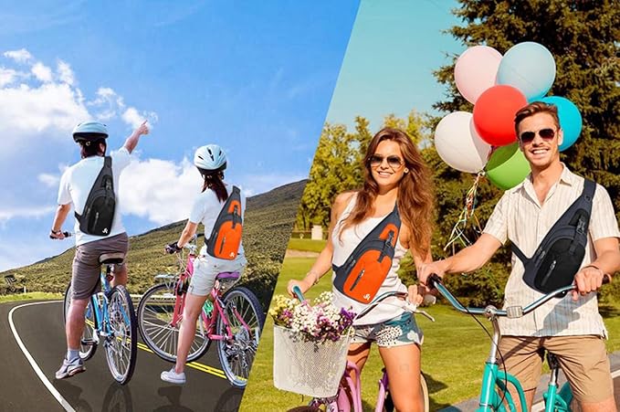 - Outdoor Hands-Free Crossbody Bags for Women and Men: Water resistant (Color Part) and anti-scratch nylon material and top-quality zippers make sling bag protective and durable for hiking, kayaking, snorkeling, gym, cycling, bike riding, walking, traveling, amusement park and daily use.