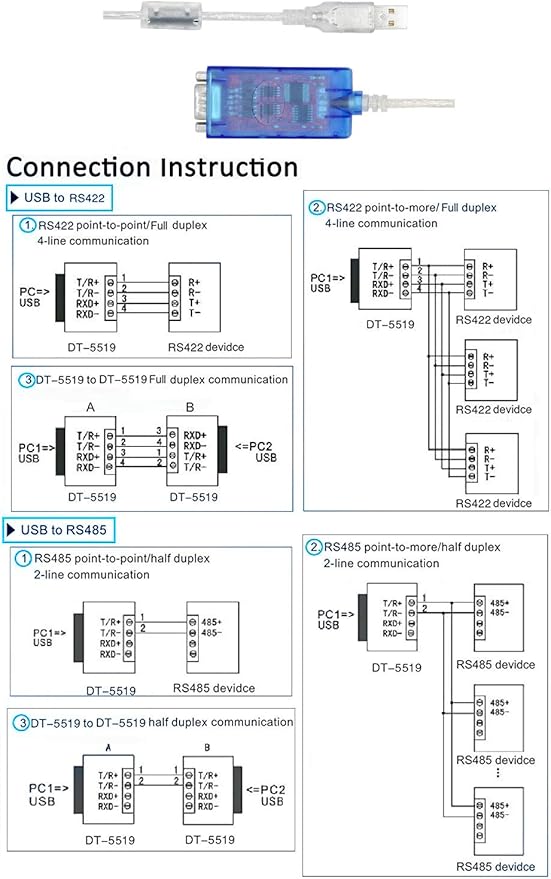 - 5 ft shielded serial RS-422 RS-485 to USB adapter cable supports windows OS, Mac and more; plug-and-play, No power supply needed