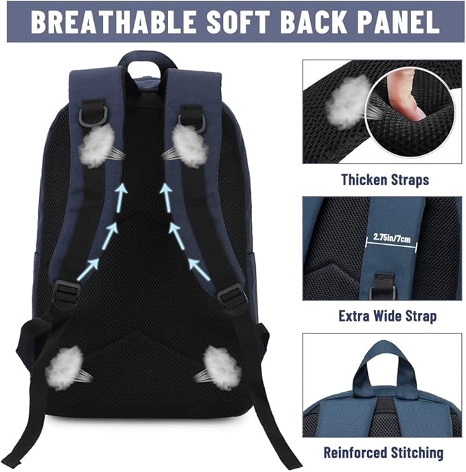 - ✔COMFORTABLE:The school backpack hangs nicely and comfortably on your back and shoulders with its air mesh breathable padded straps. You can organize your stuffs with the differently sized pockets. There is plenty of room for your keys, cellphone, wallet, etc. The padded laptop compartment fits your device snugly while the main compartment is best for holding heavy textbooks for college students.It is a true space saver and a hand-free fashion backpack.