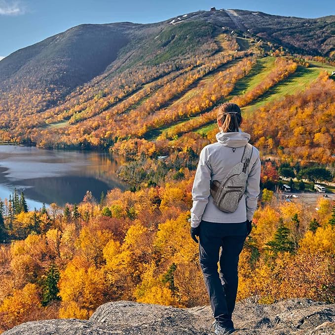 Anti-Theft Daypack Crossbody Sling Backpack, USB Charging Connector Port, Lightweight Day Pack for Travel, Hiking, Everyday, Large, Gray