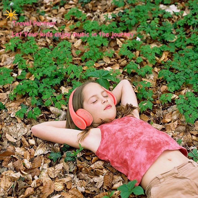 Headphones Kids Bluetooth 5.4 Wireless Play Time 68H Safe Volume Limit 85/94dB Over-Ear Foldable Headset,Fast Charging,with Aux Cord Built-in Mic for Toddler Child Pad Study Tablet Coral