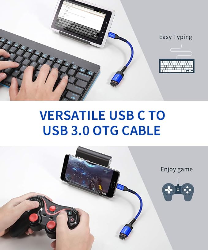 - 【USB On-The-Go】: Plug in and use computer peripherals, such as flash drive, keyboard, hub, mouse and more, makes your USB C devices compatible with USB drives and any other USB devices that support USB On-The-Go.
