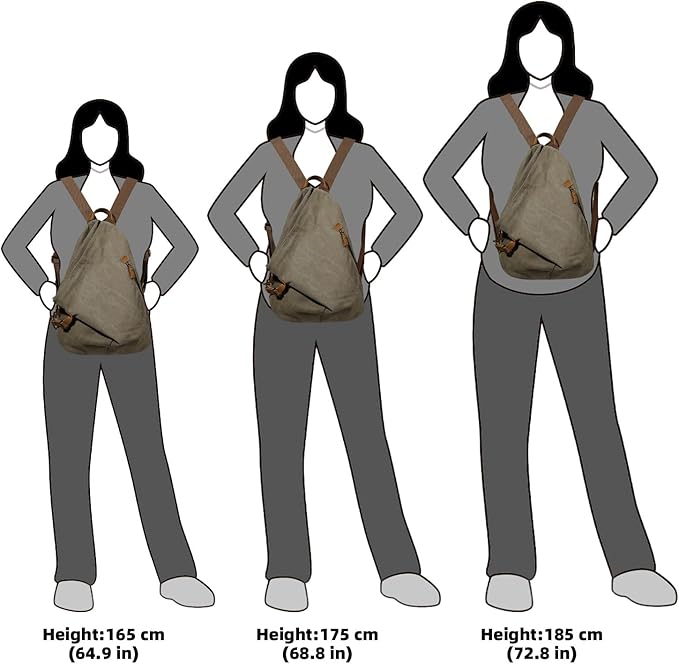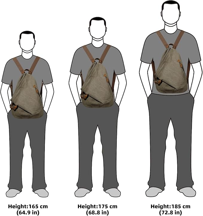 - [ROOMY] 13” L x 6.7” W X 15” H, strip length 17.7”-33.5”, roomy enough for your iPads, smartphone, power banks, wallet, umbrella, water bottles, etc. Prefect for men and women to go to business, travel, shopping, dating, tourism, gym, cycling, hiking, walking, camping, etc.