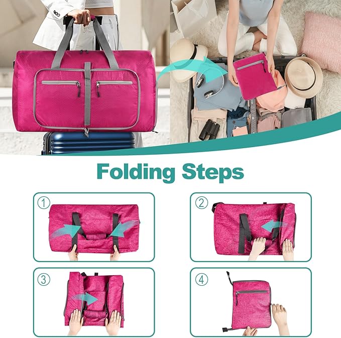 - Foldable and Spacious travel bag:The travel organizer bag can be folded into a really small size taking up so little space but opens up to have about 65L capacity of travel bags to use as a luggage bag in case that your suitcase swells. This travel duffel bag is designed to work best with bag packing cubes - to give you an organized lightweight travel experience.
