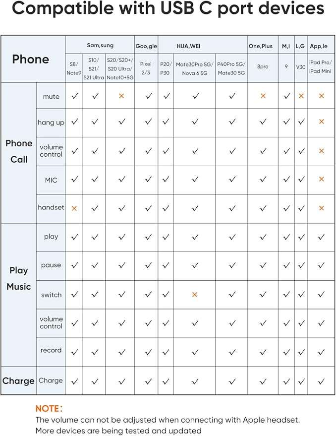 - Supports PD Charging: 2 in 1 USB C splitter only compatible with which your device can support PD charging. It supports PD charging up to 60W (20V/3A). we suggest that you use the PD charger to get faster charging speed connecting Type-C device without the PD function, the audio and charging function is an alternative, and the charging function takes priority. ***Doesn’t support QC***