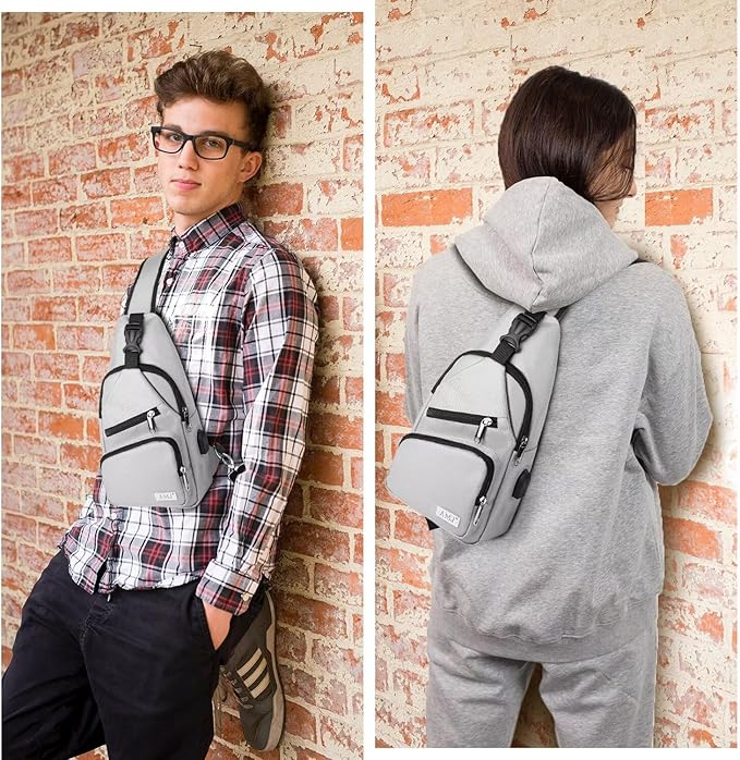 AMJ Crossbody Sling Bag Men Women, Casual Shoulder Backpack, Chest Daypack Satchel for Hiking Travel