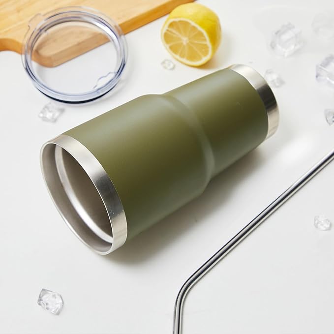 MEWAY 30oz Insulated Tumbler With Lids and Straws,Stainless Steel Double Vacuum Coffee Tumbler Cup, Brush, Durable Powder Coated Coffee Cup for Cold & Hot Drinks, Office, Travel(Army Green,8 PACK)