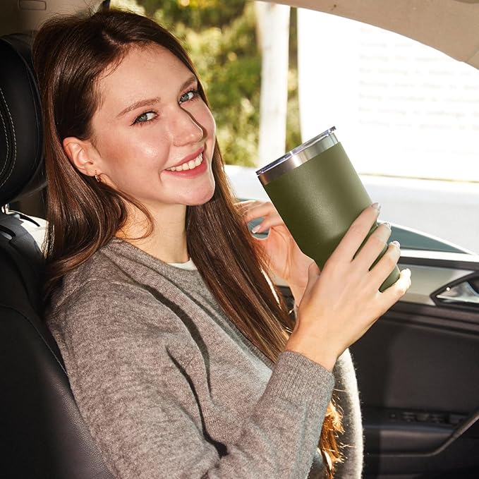 MEWAY 30oz Tumbler Double Wall Vacuum Insulated Travel Mug, Stainless Steel Tumbler with Lid, Durable Powder Coated Insulated Coffee Cup for Cold & Hot Drinks (Army Green,1 PACK)