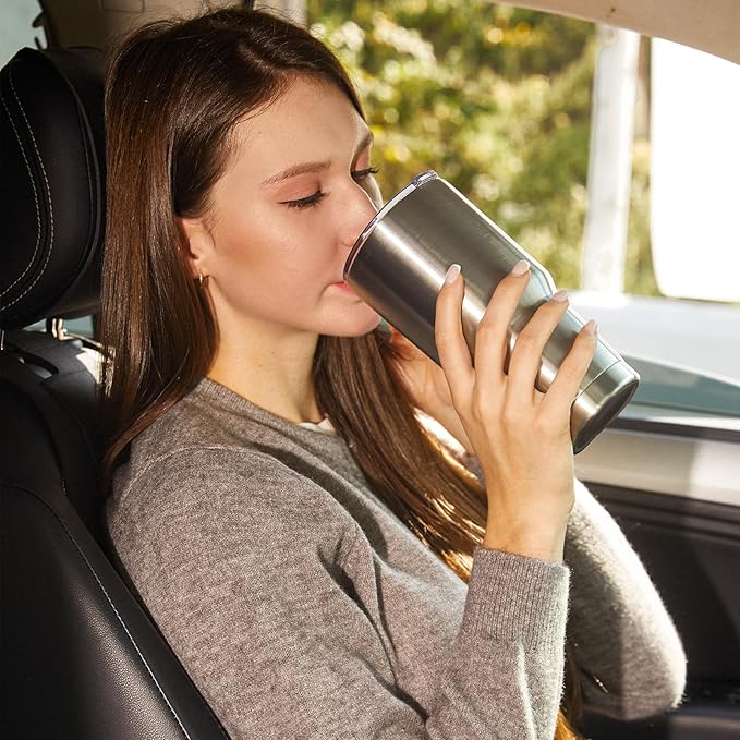 - MATERIAL DURABILITY:18/8 food grade stainless steel body,NO BPA, healthier than plastic cup. The insulated tumbler never sweat due to the Vacuum insulated design. Powder coating on the outside fits more comfortably in your hand, looks good, anti-slip