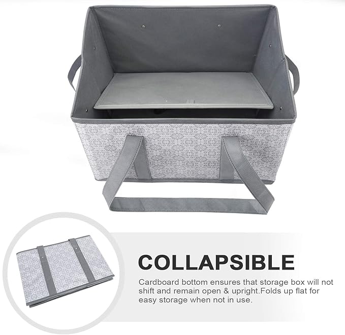 - Collasible: Folds up flat for easy storage when not in use. Cardboard bottom ensures that storage box will not shift when in use and will remain open and upright in car.