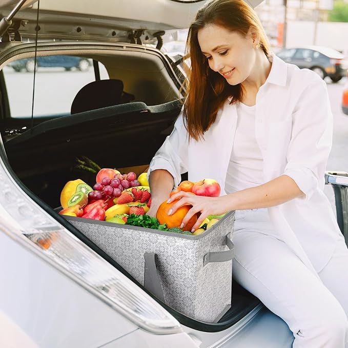 - Multi-Purpose: To organize books/CDs or to carry and organize laundry,cleaning supplies,art supplies. Also works as a reusable grocery bags to hold groceries in the car and hold picnics and snacks for the beach or camping.