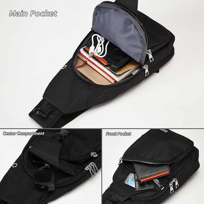 Seoky Rop Men Women Sling Backpack Anti Theft Crossbody Shoulder Chest Bag with USB Charging Port