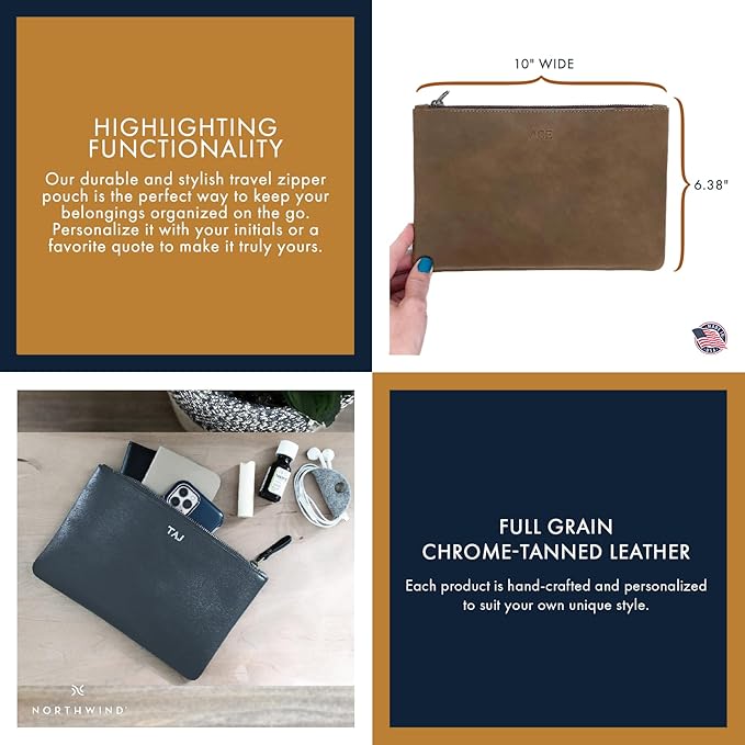 - PREMIUM GENUINE LEATHER – Crafted from high-quality full-grain leather, this zipper pouch offers timeless style, durability, and a soft, supple feel.