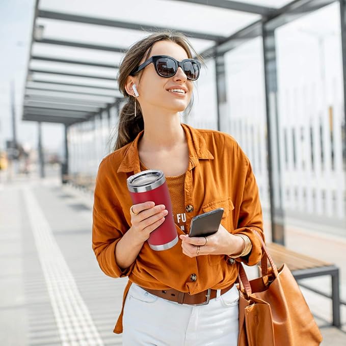 - Portable Travel Mug: 20 oz tumbler fits most car cup holders, perfect for office workers. It is suitable for use in family gatherings, pool parties, picnics and barbecues, on the go, in the office, indoors and outdoors, etc. It's also a great gift for men and women, you can make your own patterns, laser engraved on the drink mugs