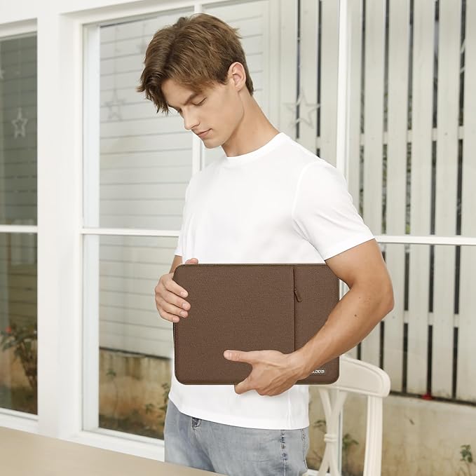 MOSISO Laptop Case 13.3 inch, 13-13.3 inch Laptop Sleeve Compatible with MacBook Air/Pro 13 / Pro 14, HP Dell ASUS Lenovo Notebook, Polyester Vertical Computer Sleeve Bag with Pocket, Light Brown