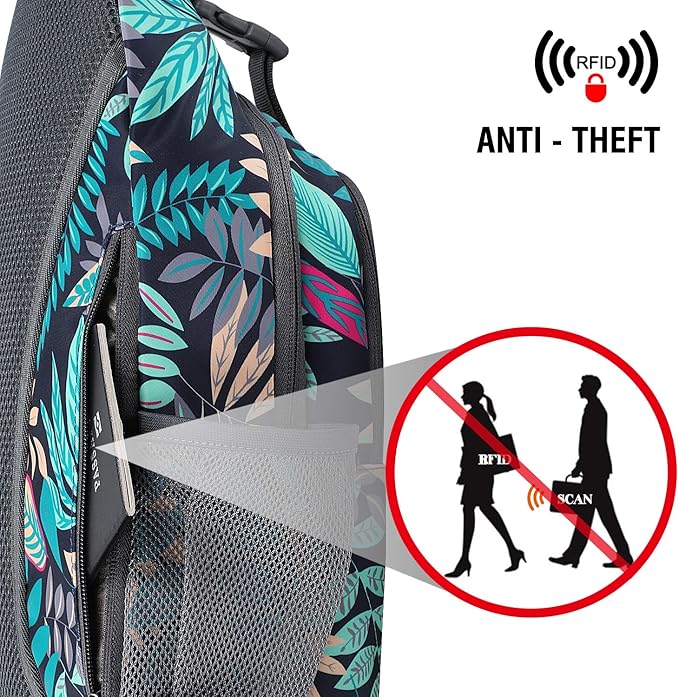 G4Free Sling Bag RFID Blocking Sling Backpack Crossbody Chest Bag Daypack for Hiking Travel(Blue Leaf)