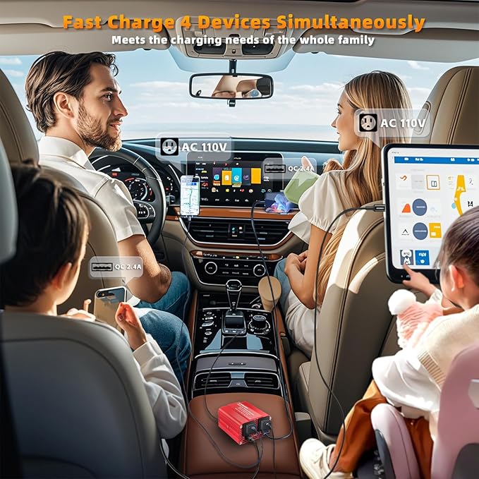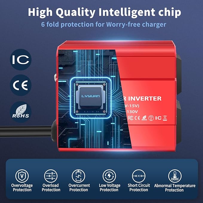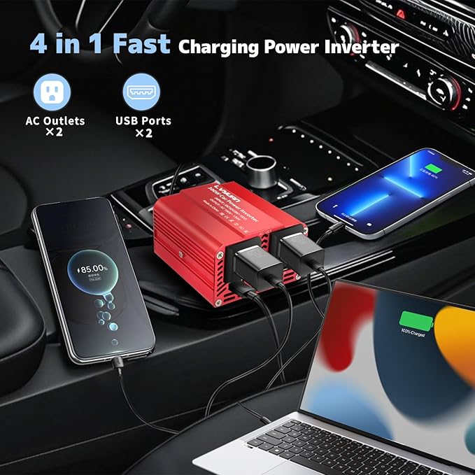- [Utterly Quiet Inverter] You might almost forget it's there! A silent and elegant mini car power inverter, which is barely audible even when the car is parked. No noise from the adapter charger disturbs the sweet talk between friends. Silence means more safety while driving, less distraction from noise, and more focus on safe driving. For safe and energetic journeys, the LVYUAN inverter is with you!