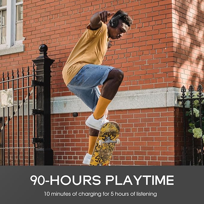 - Massive 90H Playtime & Versatile Use: Enjoy marathon listening sessions with up to 90 hours of battery life in Bluetooth mode! Just 10 minutes of charging fuels 5 hours of play. Whether you prefer the freedom of Wireless Headphones Bluetooth or the constant connection of the included 3.5mm audio cable, the DOQAUS Bluetooth Headphones over ear offer flexible listening choices.